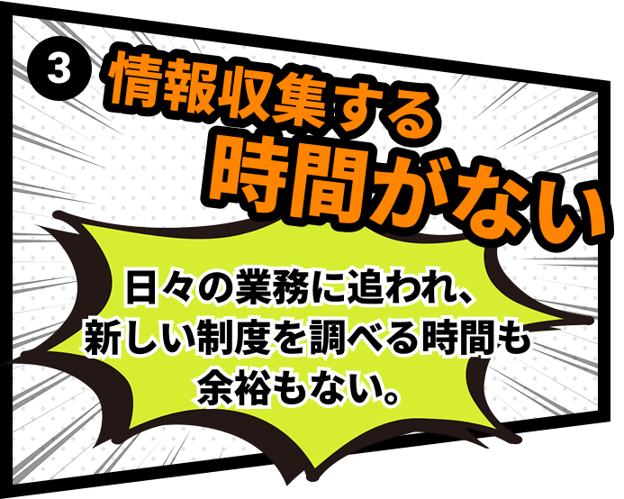 - 助成金制度の変更や廃止により申請ができなくなった場合、弊社は責任を負いかねます。制度の動向は常に注視しておりますが、政府の方針による変更は予測不可能な場合がございます。