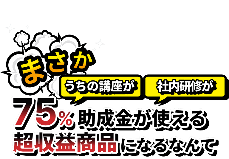 国が推進するリスキリング政策により、従業員のスキルアップを目的とした研修に対して、 最大75%。受講者一人につき90万円、一社あたり1億円の助成金が支給されます。