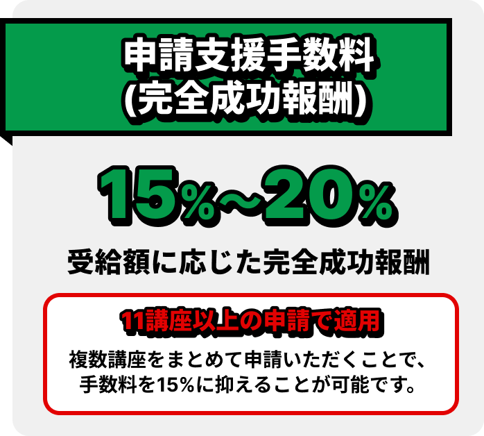 - 調査・申請に必要となる資料(講座のカリキュラム、費用がわかる書類など)のご提供をお願いいたします。必要な資料のリストは、ご契約後に詳しくご案内いたしますのでご安心ください。正確かつ速やかなご提供にご協力をお願いいたします。